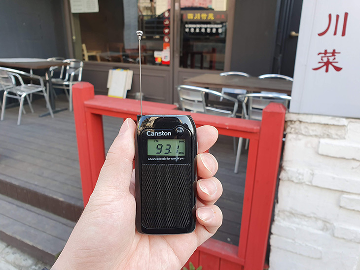 실제 야외에서 사용을 해 봤지만 비슷한 다른 제품을 써봤던 분의 이야기를 들어보니 다른 제품은 채널도 잘 안잡히고 잡음도 많아서 불편했는데 캔스톤 제품은 소리가 꽤 선명하다고 하더군요. 실제로 야외에서 사용시에는 안테나를 한칸만 꺼내도 충분히 채널이 선명하게 잡혔습니다. 다 꺼낼 필요가 없더군요.