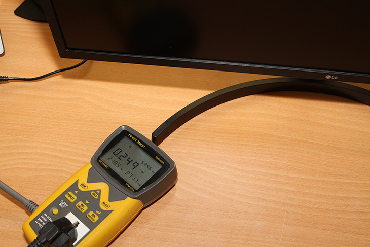 모니터의 전력소모량을 측정 해 봤습니다. HPM-100A로 측정을 해 봤는데요. 대기시 전력소모량은 0.249W로 아주 낮았습니다. 여러가지 모니터를 측정해 봤지만 이정도 수치면 대기시 가장 낮은 전력소모량 입니다.