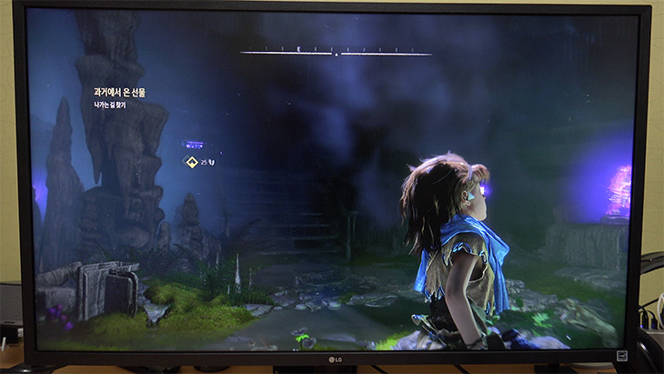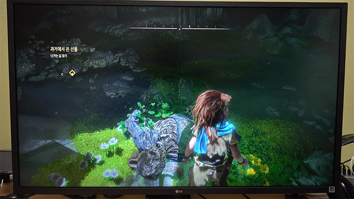 PS4 Pro 에서 Horizon ZERO DAWN 게임을 해 봤습니다. 처음에는 임의로 설정을 변경하여 HDR를 끄고 테스트를 해 봤습니다. HDR 효과를 끄면 오히려 주인공이나 주변 배경이 선명해보이는 느낌은 있습니다. 효과가 적용되지 않기 때문이죠.