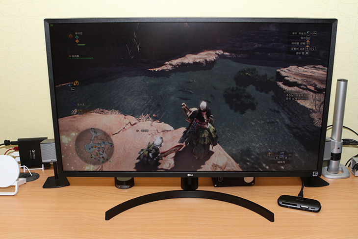 몬스터헌터 게임도 사양이 생각보다는 높다는 느낌이 있네요. 4K해상도에서 게임을 하니 제 그래픽카드가 사양이 좋음에도 최고 옵션에서는 60프레임이 겨우 나오네요. 화면의 느낌이 조아서 게임하는 맛이 나더군요. HDR를 이용하는 게임을 많이 사용하는 경우라면 이 모니터는 더 큰 효과를 얻을 수 있습니다.