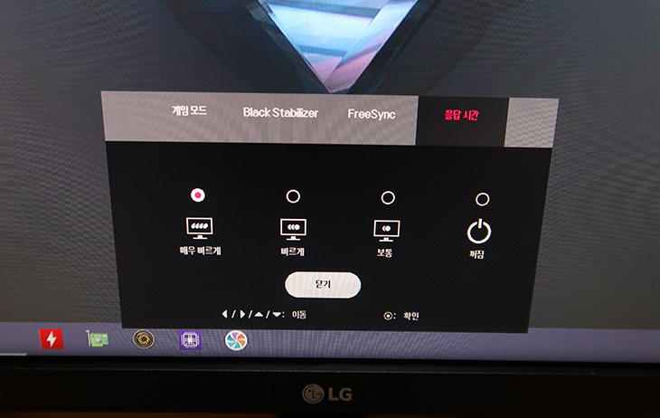 응답시간을 조정해서 반응속도를 조정할 수 있습니다. 모니터 사용시 잔상이 보이거나 역잔상으로 불편한 느낌은 전혀 없었습니다. VA 패널 사용시 이런 부분을 걱정하는 분들이 있는데 그런 걱정은 안해도 됩니다. 실제 대부분 고급형 모니터에서도 VA패널은 꽤 많이 사용이 되고 있습니다. VA패널은 명암대비가 높아서 그래픽작업을 할 때도 확실한 장점이 있습니다.