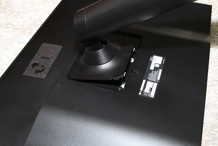 모니터와 모니터 받침대를 고정하는 부분 입니다. 볼트가 4개가 보이는데 이것을 풀면 VESA를 지원하는 모니터 암에 연결이 가능합니다. 볼트가 미리 채결이 되어있어서 볼트를 특별히 찾거나 그럴 필요 없는점이 괜찮네요. 모니터 암이 있는 분은 쓰셔도 되고 안쓸수도 있습니다.