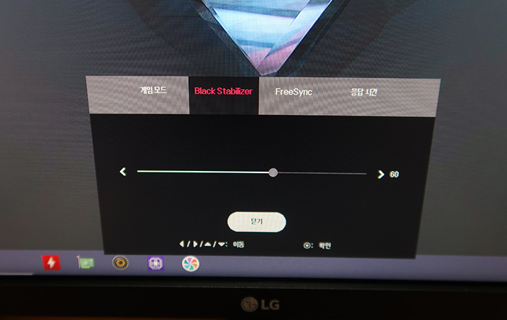 Black Stabilizer는 검은색에 대한 명암대비를 조정이 가능한데요. 영상을 보거나 게임을 할 때 어두운 부분이 너무 어둡게 보여서 잘 보이지 않는 경우가 있는데요. 그 경우 뭘 보고 있는지 잘 안보여서 불편하다는 느낌을 받기도 하죠. 이 옵션을 조정하면 어두운 부분에 대한 밝기만 변경이 되어서 좀 더 밝은 화면을 볼 수 있습니다. 다만 이 옵션을 무조건 최대로 쓴다고 해서 무조건 좋은 것은 아니므로 사용자가 필요에 따라서 조정을 하면서 쓰면 됩니다.