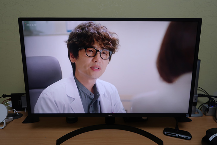 사진을 통해서 모니터의 느낌을 완벽하게 전하지 못하는게 아쉬운 부분이 있는데요. 모니터에 제가 카메라로 찍은 사진을 띄워봤는데요. 꼭 화면이 뚫려서 뭔가 현미경으로 보고 있는 듯한 느낌의 모습을 볼 수 있었습니다. 정말 화면 좋다 이런 느낌이 드는 장면 이었는데요. 꽤 오랜 시간동안 화면을 계속 보고 있었는데 해상도가 어색하지 않고 눈도 편안한 부분이 확실히 좋았습니다. 모니터를 볼 때 눈이 편안하지 않게 느끼는 부분이 너무 높은 색역대에서 부담감이 있거나 플리커 프리가 안되거나 또는 빛이 불편하거나 하면 눈이 금방 피곤해지고 불편하다는 느낌이 생기는데요. 이 모니터는 그런 느낌이 없었습니다. 지금 글을 쓰는 이 시점에도 이 모니터를 쓰고 있는데요. 확실히 느낌은 좋네요.