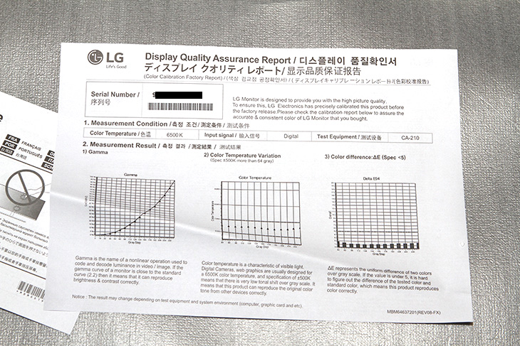 먼저 처음 보인게 모니터를 각각 테스트 했을 때은 디스플레이 품질확인서 입니다. 모니터의 개별 확인서 같은 것이죠. 제품이 출고될 때 확인을 한번 더 받은 것이므로 품질을 믿고 쓸 수 있겠죠.