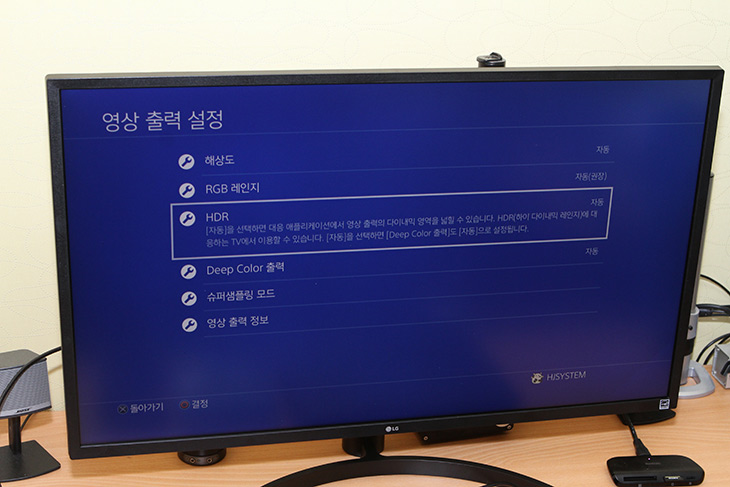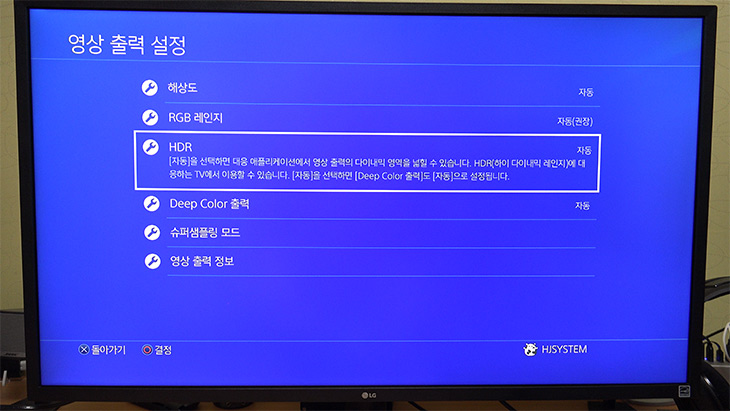 PS4 Pro 설정에서 영상 출력 설정에 HDR은 자동으로 설정이 맞으면 켜지도록 되어있습니다.