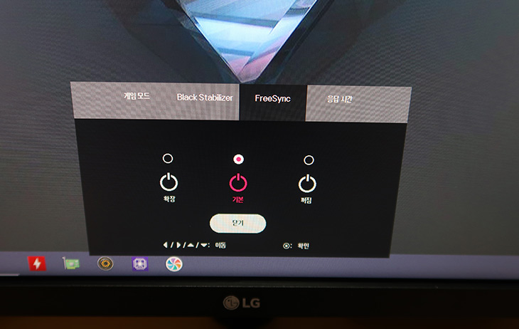 영상 조정에서는 영상모드와 화면조정, 게임 조정,화면 초기화가 가능 합니다.