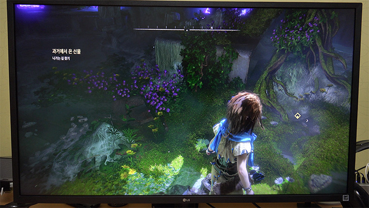 PS4 Pro 에서 Horizon ZERO DAWN 게임을 해 봤습니다. 처음에는 임의로 설정을 변경하여 HDR를 끄고 테스트를 해 봤습니다. HDR 효과를 끄면 오히려 주인공이나 주변 배경이 선명해보이는 느낌은 있습니다. 효과가 적용되지 않기 때문이죠.
