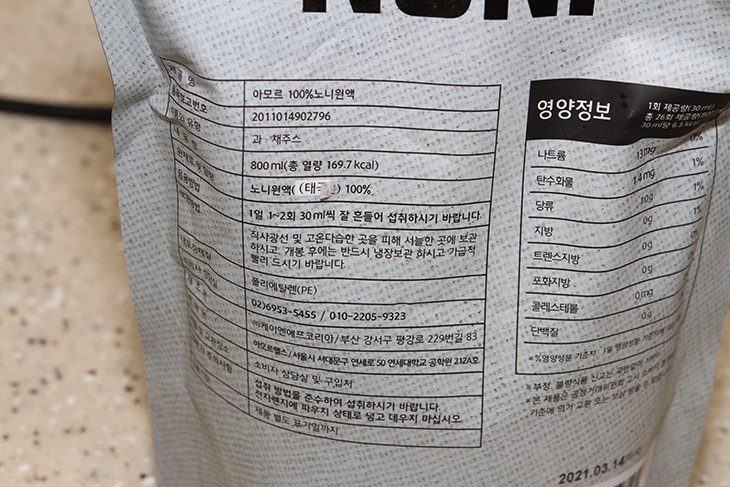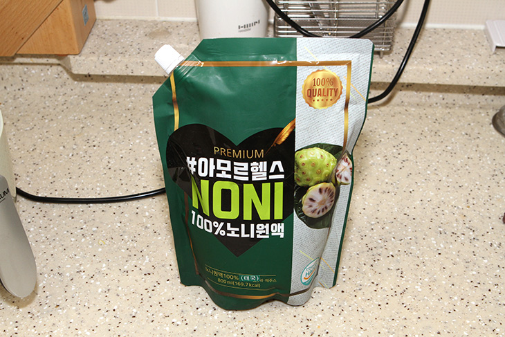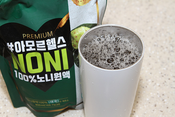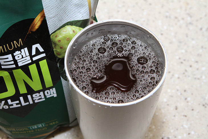 노니가 몸에 좋다고 하긴 하는데 열매를 직접 먹는 것은 힘들고 이렇게 원액으로 된 제품을 먹으면 되긴 하는데요. 물론 가격은 비싸긴 한데 조금씩 타서 물을 많이 먹으면 꽤 괜찮습니다.