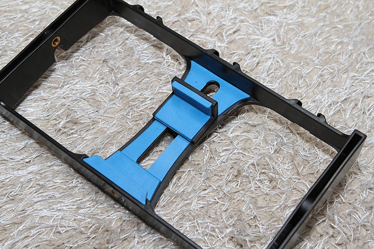 스마트폰 또는 더 큰 태블릿도 고정이 가능 합니다. 거치대는 볼트를 풀어서 스마트폰을 누르면서 고정하면 되는 형태인데요. 안쪽에는 쿠션감이 있는 재질을 사용해서 스마트폰을 안정적으로 고정이 가능 합니다.