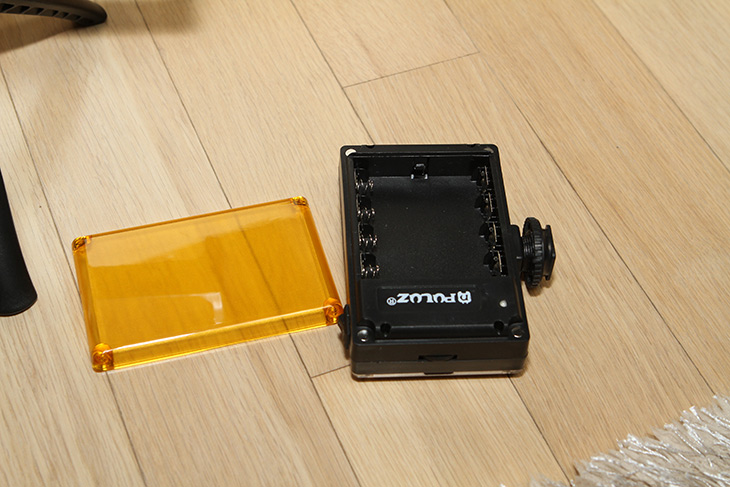노란색의 커버를 이용하면 색온도를 낮추는 효과가 있습니다. 색온도를 직접 조정하는 다이얼은 없지만 커버를 바꿔서 효과를 낼 수 있습니다.
