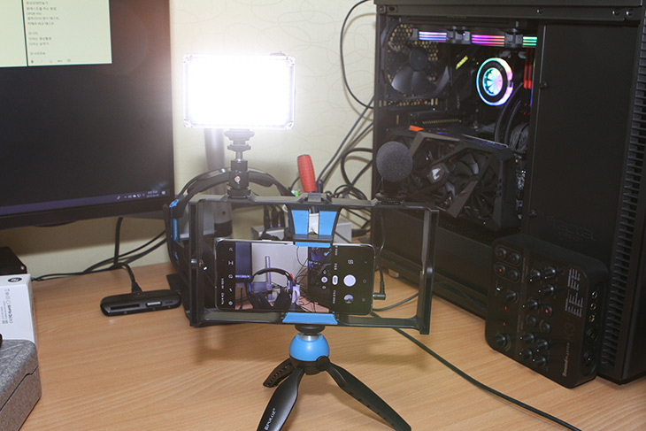 갤럭시S10 5G폰을 올려놓고 촬영을 해 봤었습니다. 고화질 방송이 가능한데요.