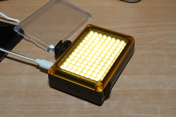 LED 조명은 건전지 4개 또는 USB 전원으로 켜서 사용이 가능 합니다. 96개의 LED가 들어가있는데 생각보다 밝기도 무척 강하고 커버를 바꿔서 색온도 변경이 가능하며 밝기 조정도 가능합니다.