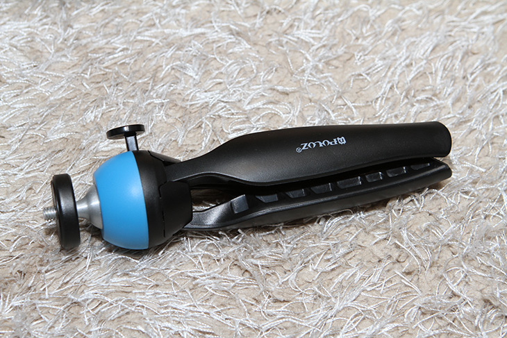 미니 삼각대는 버튼을 눌러서 각도를 조절하는 형태로 상당히 간단하지만 쓸모가 많게 만들어져 있습니다. 거치대를 고정하는 용도 외에도 카메라를 고정하는 용도로도 사용이 가능합니다.
