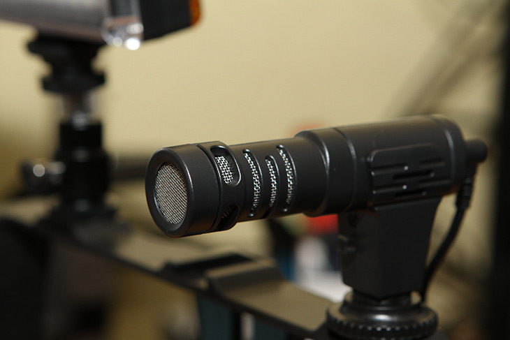 마이크의 경우 샷건마이크가 장착되어있는데 전면에 있는 소리를 더 잘 수음합니다.