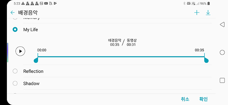 배경음악은 사용자가 임의로 선택도 가능합니다. 슬로모션과 함께 배경음악도 들어가니 꽤 그럴듯해지더군요.