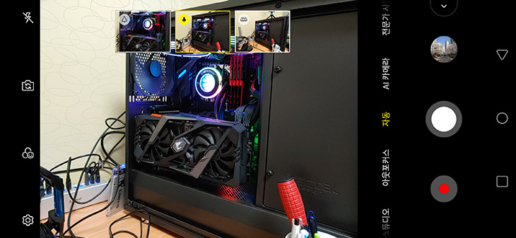 일반 초광각 망원 촬영을 사용자가 원하는대로 이용할 수 있는데요. 위에 3개의 촬영 화각 아이콘을 길게 누르면 미리 보기를 할 수 도 있습니다.