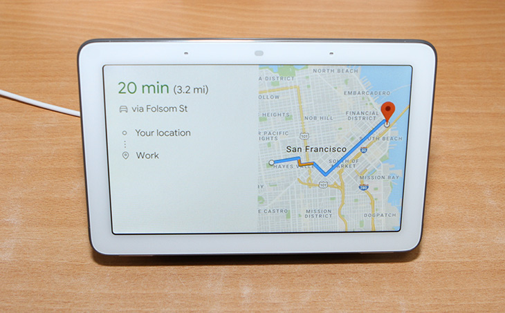 특정 장소까지 가는데 얼마나 걸리는지 미리 확인이 가능 합니다. 구글 홈 허브는 인공지능 스피커와 같은 역할을 하지만 화면이 나타나므로 눈으로도 볼 수 있는 정보가 나타나서 편리합니다.