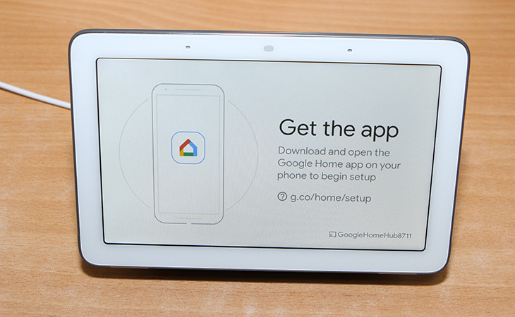 구성품으로는 구글 홈 허브와 전원어댑터, 설명서로 구성되어 있습니다.