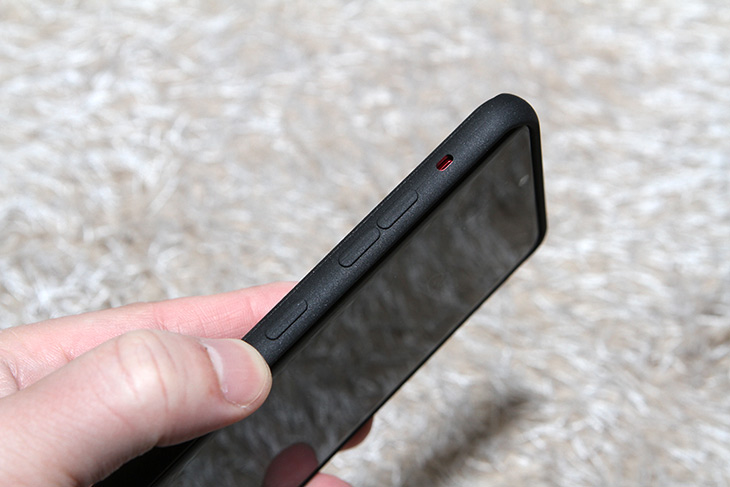 버튼 부분은 돌출된 형태를 하고 있는데 케이스가 두꺼운데 이런 버튼의 경우 버튼이 뻑뻑한 감이 있어서 불편한데요. 이 제품은 두께가 얇은 타입이라 버튼도 쉽게 잘 눌립니다. 너무 뻑뻑하거나 너무 쉽게 눌리지 않고 적당한 정도라 괜찮네요.