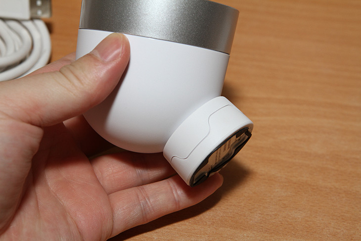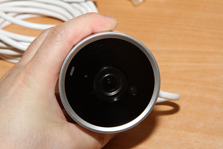 앞부분을 보면 상태를 알려주는 LED가 있고 IR LED가 있습니다. IR LED는 적외선을 내는데 밤이 되어 주변이 광량이 줄어들면 자동으로 켜지도록 할 수 있습니다. 주야간 모두 촬영이 가능하죠.