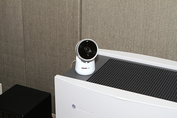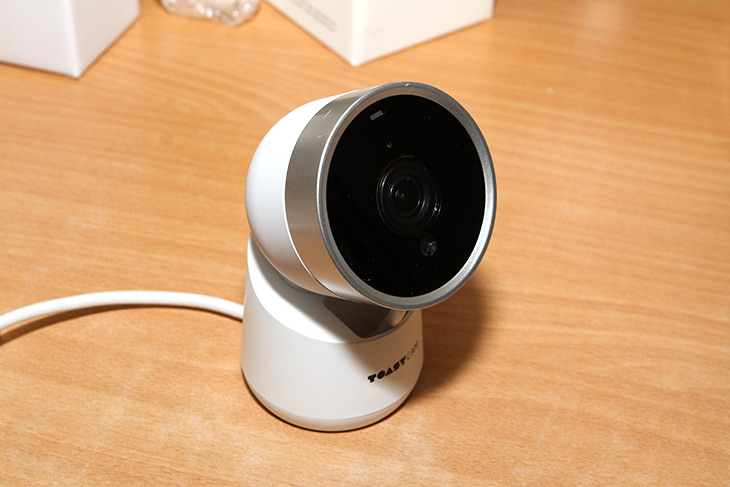 약간 귀여운 로봇처럼 생기기도 했는데요. 각도는 사용자가 임의로 조정을 하면 됩니다. 화각이 비교적 넓은 편으로 좌우로 움직일 수 있는 CCTV에 비해서 넓은 화면을 계속 감시 할 수 있습니다. 좌우상하로 움직이면서 감시하는 타입도 써봤었고 토스트캠처럼 화각이 애초에 넓은 제품도 써봤는데요. 개인적으로는 그냥 화각이 넓은 제품이 좋은 것 같습니다. 화각이 좁고 좌우상하로 조작해야 하는 타입의 경우 감시를 못하는 영역이 발생할 수 밖에 없는데요. 토스트캠은 화각이 넓어서 좀 멀리 놓고 넓은 공간을 다 커버할 수 있어서 편했습니다.