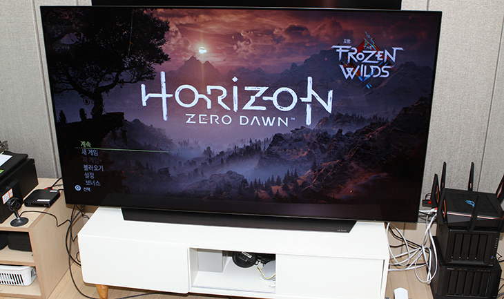 카메라로 화면의 느낌을 다 담지 못하는게 아쉬울 정도로 화질은 엄청 좋았는데요. 컨텐츠 화질이 좋아서 그런지 보는 재미도 있고 게임하면서 긴장감도 계속 느껴지고 좋았습니다.