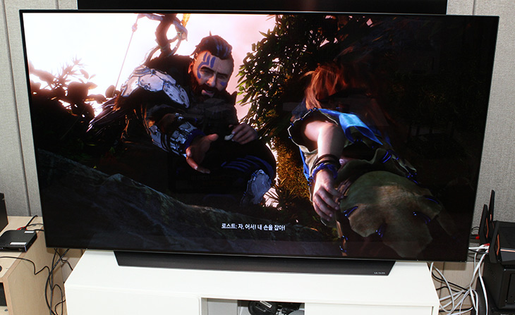 처음 이 제품을 볼 때 (전원 꺼진 상태에서) 우와 크다 라는 생각을 가장 먼저 했는데요. 그보다도 더 놀랐던 것은 화질입니다. 이전에 쓰던 TV도 UHD해상도라 화질이 좋았다고 생각했지만 일반 LCD TV를 쓰다가 OLED TV를 써보니 화질이 엄청나게 차이가 나더군요. 원래 제품은 색이 좀 밋밋했었는데 꽉 채워서 들어오는 느낌이라고 할까나.