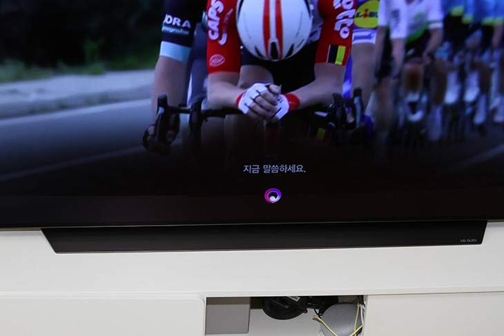리모컨에 마이크 버튼을 누른 상태로 말을 바로 하면 되는데요. 멀리 소리치는 것처럼 명령할 필요가 없고, 인식률 또한 뛰어납니다. 버튼을 누른 상태로 얘기하면 되기 때문에 따로 명령어를 통해 음성 명령을 실행할 필요도 없습니다.