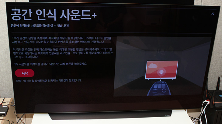 TV가 설치된 공간과 사용자가 앉아있는 위치가 항상 일정하지는 않을 텐데요. 근데 공간 인식 테스트를 통해 한번 더 사운드를 정밀하게 송출합니다.