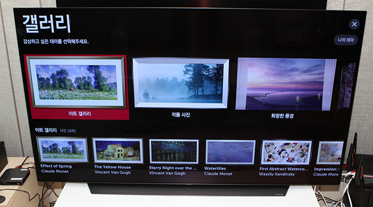 그 외 갤러리 모드라는 기능도 있습니다. 제 아내가 무척 좋아하던 기능입니다. 갤러리 모드도 이용할 수 있는데요. TV를 벽에 붙여 두었을 때 특히 이부분은 장점이 될 것 같았습니다. TV를 꼭 장식품처럼 쓸 수 있는 기능인데요.