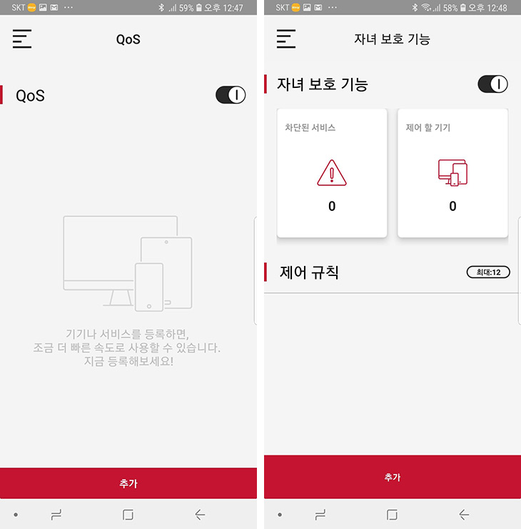 자녀보호기능을 이용하여 서비스를 제한하거나 제어할기기에 등록하여 사용을 제한할 수 있습니다.