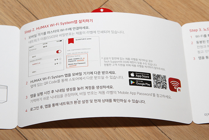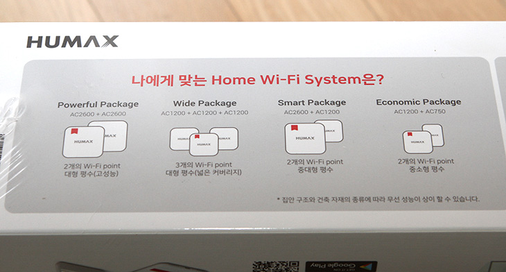 측면에는 제품을 선택하는 방법도 적혀 있네요. 휴맥스에서는 E3 (AC1200)과 E10 (AC2600) 두가지로 구성된 세트가 있습니다. 사용자의 용도에 따라 선택이 가능한데요. 더 넓은 평형대를 비교적 저렴한 가격으로 확장하고 싶다면 E3 3개 세트가 좋고, 좀 더 고성능이 필요하다면 E10을 넣은 구성을 하느것이 좋습니다. 이 외에도 좀 더 소형평형대를 지원하는 E2, E1 제품도 있습니다.