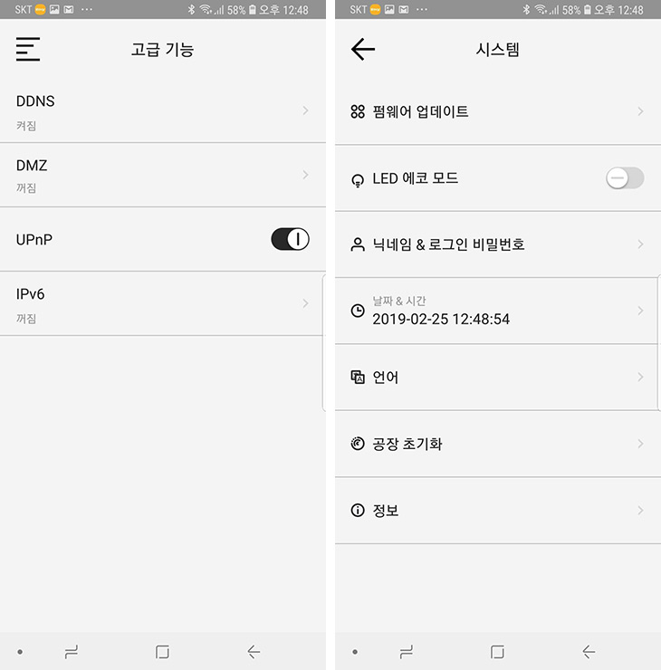 고급기능에서는 DDNS, DMZ, UPnP, IPv6 설정이 가능 합니다. 생각보다는 많은 기능들을 제공을 합니다.