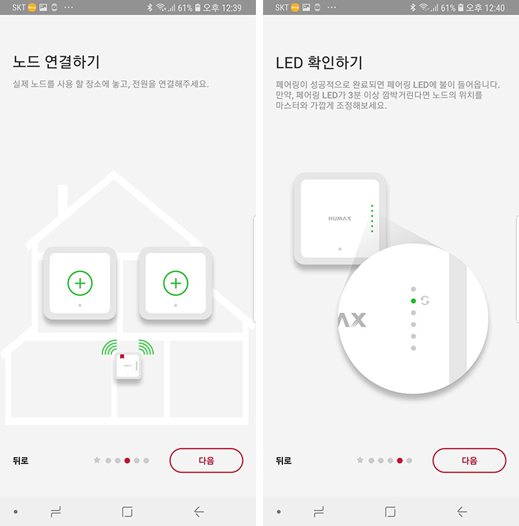 이 제품은 별도의 설정 없이 전원만 연결하면 바로 사용할 수 있도록 되어있습니다. 보통 하나는 마스터로 사용하고 나머지는 Node로 연결을 하는 과정을 거치지만, 이 제품은 미리 마스터와 Node가 연결된 형태로 출고가 되므로 전원만 연결하면 바로 사용이 가능 합니다. WiFi SSID 비밀번호도 본체 하단에 있는 것을 입력하면 바로 이용이 가능합니다. (추후에 설정을 통해서 변경가능)