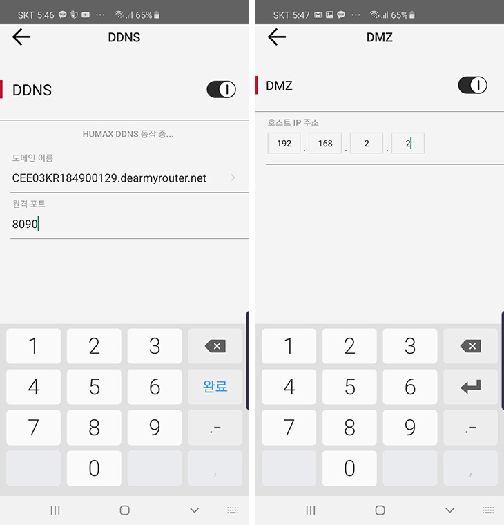DDNS서비스를 이용해서 dearmyrouter.net 도메인을 이용할 수 있습니다. DDNS를 무료로 제공해주는 경우가 그러게 많지는 않은데 무료로 쓸 수 있는 점은 장점이 되겠네요. DMZ 설정을 통해서 외부로 직접 연결하여 서버 등을 운용도 가능 합니다.