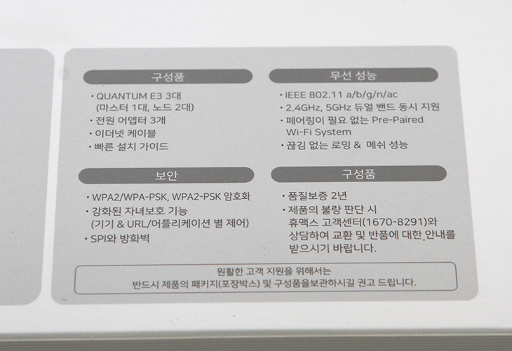 측면에 구성품 설명과 무선성능 등이 적혀 있습니다. 페이링이 필요없는 Pre-Paired WiFi System 이라는것이 이 제품의 장점이면서 특징이긴 합니다. 초보자들도 쉽게 구성할 수 있다는 장점이 있죠.