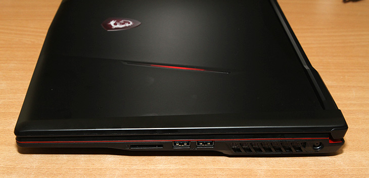 MSI로고 부분에는 전원이 켜지면 빛이 들어오도록 되어있습니다. 상판은 약간 탄성이 있는 재질로 충격을 견디게 설계가 되어 있습니다. 게이밍 노트북 치고는 두께가 많이 얇은 편 입니다. 물론 더 얇은 노트북도 많이 있지만 비교적 얇은 두께를 가지고 있고 업그레이드도 좀 더 쉽게 설계가 되어있죠.