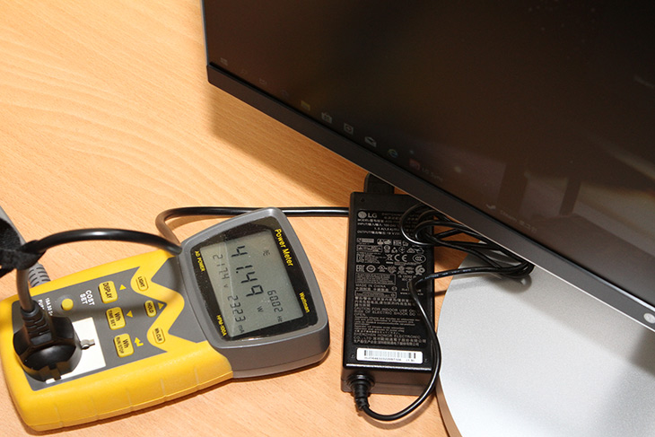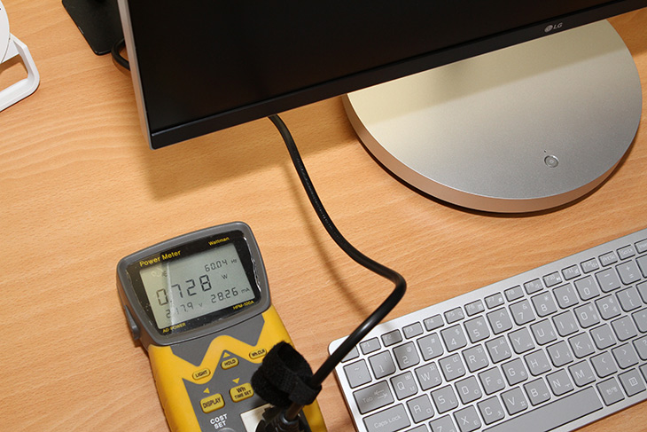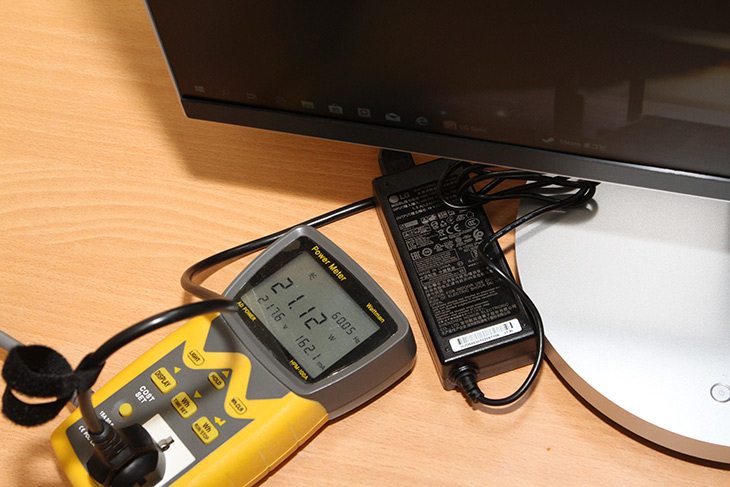 전력소모량을 측정하기 위해서 HPM-100A를 연결했습니다. 전원이 꺼진상태에서의 대기시 전력소모량은 0.728W 입니다.