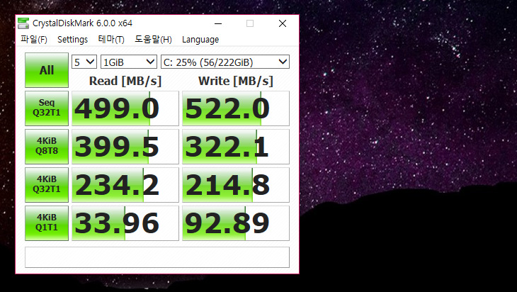 기본 장착된 SSD는 S-ATA 타입으로 비교적 괜찮은 성능의 SSD가 사용이 되었습니다.