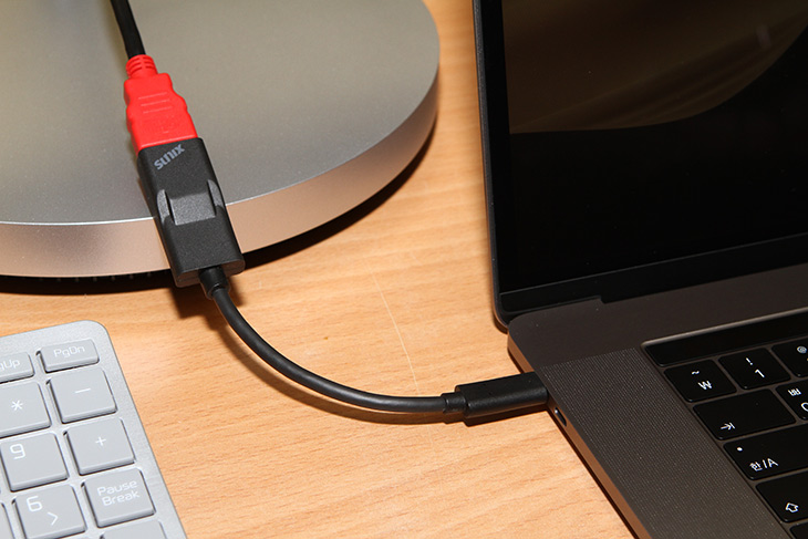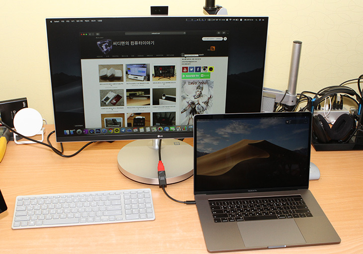 맥북프로에 HDMI 컨버터로 HDMI 케이블을 연결하여 확장을 해 봤습니다.