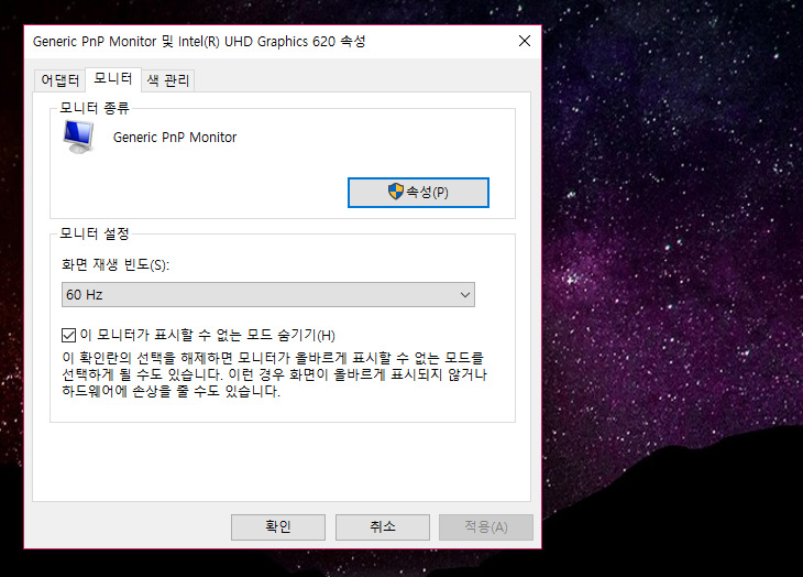 모니터는 27인치 FHD 해상도에 60Hz 입니다.