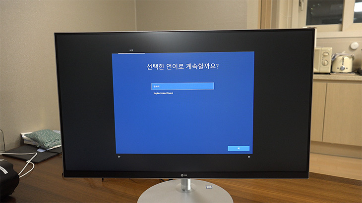 처음 전원을 연결해서 켠 뒤 운영체제 (윈도우10) 설정을 하였습니다.