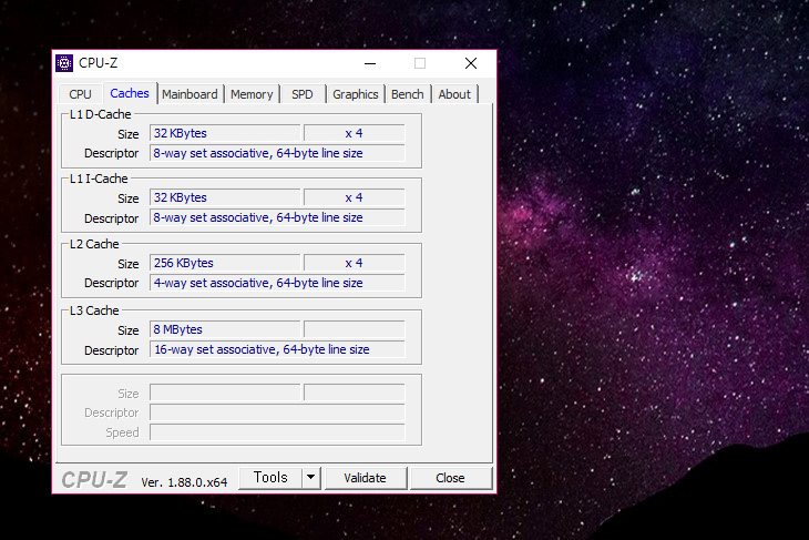 캐쉬 정보 입니다. L3캐쉬가 8MB가 사용이 되었습니다.