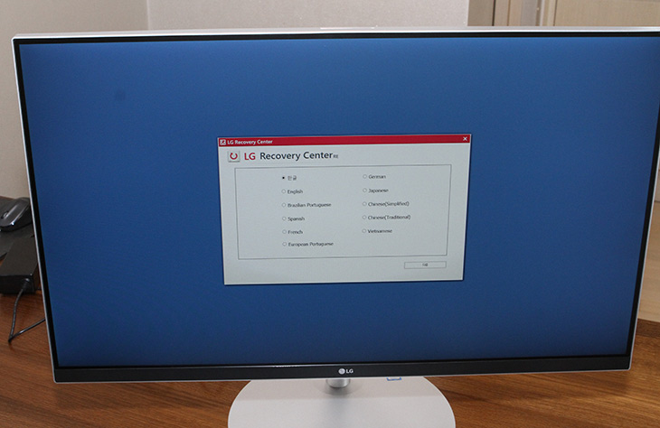 LG Recovery Center로 들어간 뒤 언어를 한글을 선택을 합니다. 다음을 누릅니다.