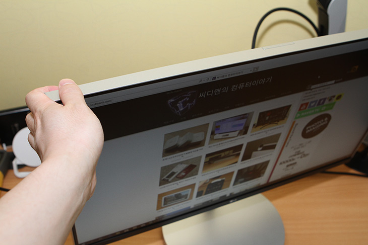 모니터도 특별히 더 두꺼워지진 않았습니다. 베젤도 얇아서 전체적으로 깔끔하고 군더더기 없는 디자인을 하고 있습니다.