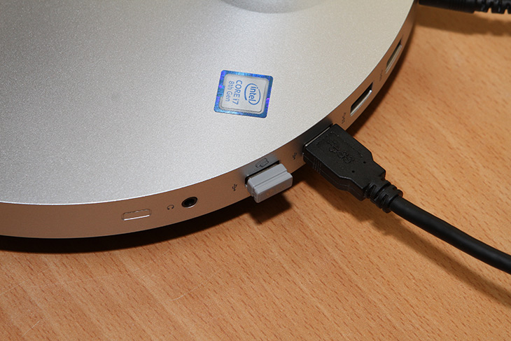 후면 아래 부분에는 여러가지 인터페이스가 나란히 붙어 있습니다. 인터페이스를 모두 후면으로 위치하여 선정리가 쉽고 앞부분 디자인을 깔끔하게 했습니다.