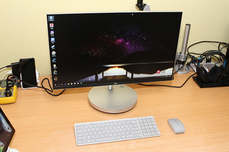 27인치 화면이라 그렇게 화면 사이즈가 작아보이진 않습니다. 27인치 FHD 해상도라 조금은 평범하다고 볼 수 있는데요. 그런데 화면은 터치가 안됩니다. 일체형PC 실제 사용자에게 있어서 터치는 생각보다 많이 쓰이진 않는다고 합니다. 그래서 요즘 추세가 터치를 빼는 추세 입니다. 키보드와 마우스가 있으므로 굳이 터치가 되는것이 필요 없다는 것이죠. 물론 터치가 빠지면서 화면에 빛반사가 없는 타입으로 변경되어 개인적으로는 더 편했습니다.