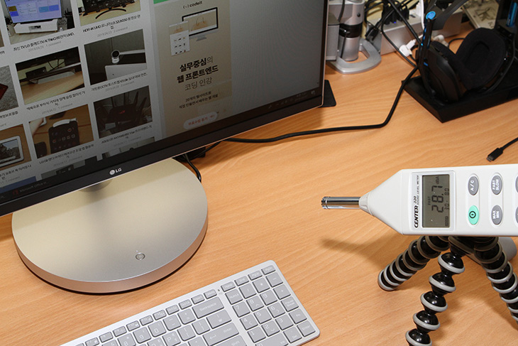 올인원PC의 소음을 측정해 봤습니다. Center-320으로 측정한 방의 기본 소음은 26.1dB 입니다. 무척 조용하고 아무 소음이 들리지 않는 정도의 환경 입니다.