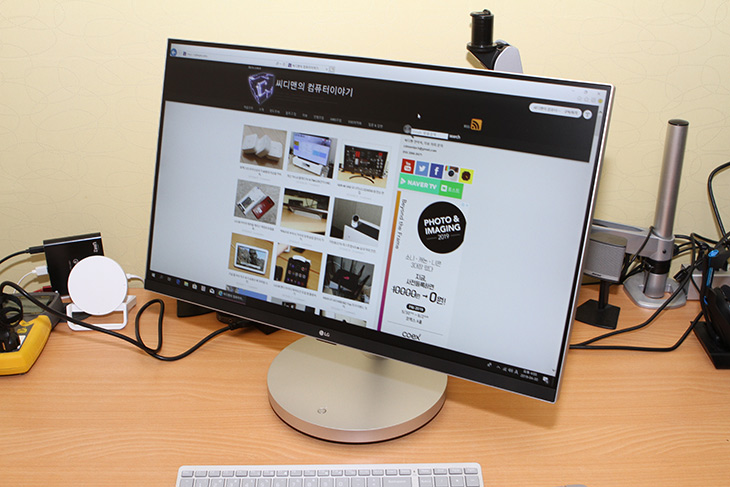 27인치 화면이라 그렇게 화면 사이즈가 작아보이진 않습니다. 27인치 FHD 해상도라 조금은 평범하다고 볼 수 있는데요. 그런데 화면은 터치가 안됩니다. 일체형PC 실제 사용자에게 있어서 터치는 생각보다 많이 쓰이진 않는다고 합니다. 그래서 요즘 추세가 터치를 빼는 추세 입니다. 키보드와 마우스가 있으므로 굳이 터치가 되는것이 필요 없다는 것이죠. 물론 터치가 빠지면서 화면에 빛반사가 없는 타입으로 변경되어 개인적으로는 더 편했습니다.